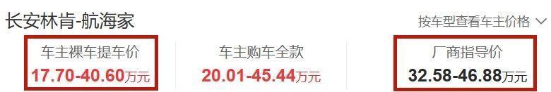 林肯航海家售价32.58-46.88万元,车主提车价为17.70-40.60万元,标配车型的价格优惠了14.88万元,优惠力度还是很大的,但是想要拿到这样的优惠是有额外条件的,起码全款拿不到这样的价格,而且还要叠加国补或省补。总而言之,20万以内确实可以买到林肯航海家,不过需要叠加很多buff。