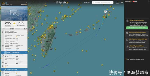 这一系列军事动作不仅暴露了美方在台海周边战略布局的进一步升级,也预示着台海空情已进入更加敏感的阶段。 据台媒援引航班监控网站Flightradar24数据披露,8月3日上午7时许,一架隶属于美军海军的MQ-4C从琉球嘉手纳空军基地起飞。 在航行约20分钟后,该无人机突然掉头,径直穿越宫古海峡,朝台岛东北方向快速接近,令人警觉的是,在接近多良间岛与石垣岛以北约120公里处时,该机关闭了应答器,切断ADS-B信号,随后在隐身状态下逼近台岛新北市瑞芳区的鼻头角海岸线,最近时距离仅50公里左右。